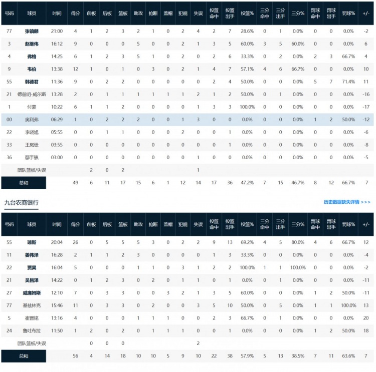 上半場比賽,遼寧全隊一共出現(xiàn)了14次失誤,而吉林全隊的失誤數(shù)為10次。