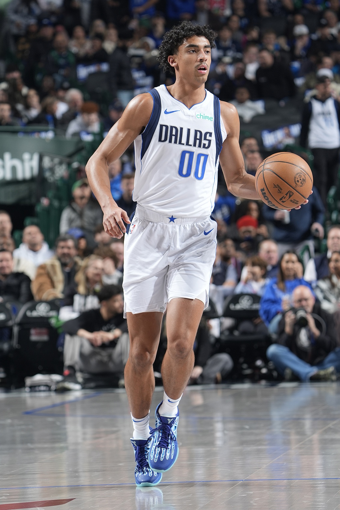 在全明星周末前,球館內(nèi)的任何一家球隊商店里,都找不到東契奇的周邊商品,哪怕是打折出售的也沒有。球隊賽前的精彩集錦視頻中,幾乎看不到東契奇的畫面,甚至連背景中都很少出現(xiàn)。在球館里,他留下的痕跡寥寥無幾。在122區(qū)附近的走廊展示區(qū),有一張照片,畫面模糊,東契奇在背景中看著另一位前獨(dú)行俠球員杰倫-布倫森沖向籃筐。