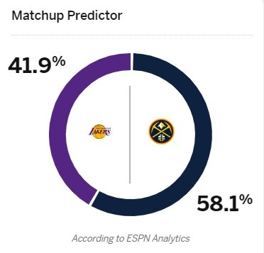 湖人背靠背!ESPN預(yù)測(cè)明日湖礦大戰(zhàn):湖人41.9%勝率 掘金58.1%