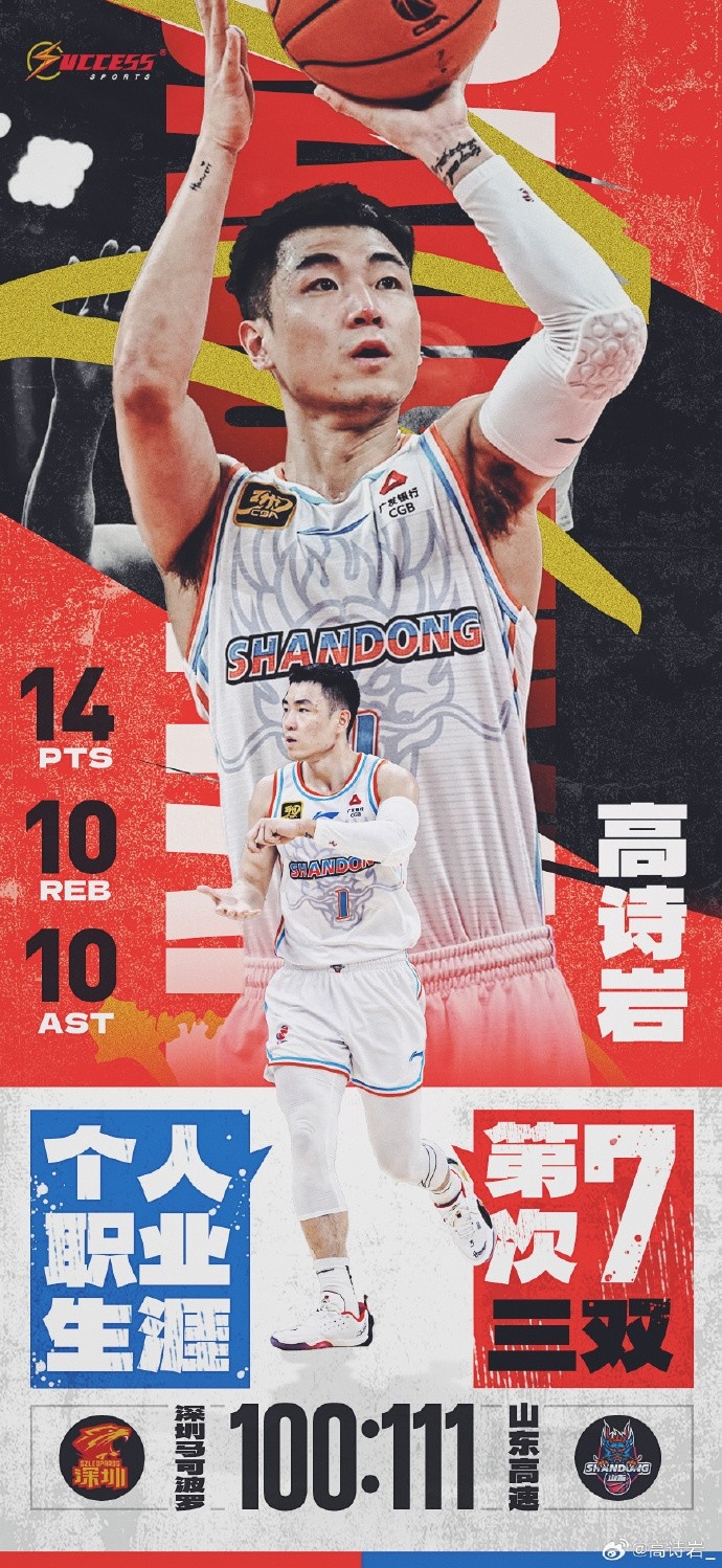 此役山東后衛(wèi)高詩巖表現(xiàn)非常全面,打了32分鐘6投3中,三分3中2、罰球8中6,砍下14分10籃板10助攻的三雙,還有1搶斷,正負(fù)值+19全場最高。