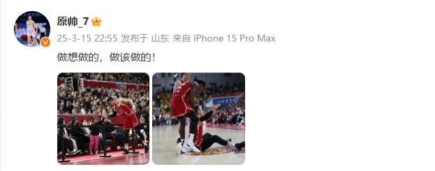 賽后,山西隊球員原帥發(fā)文寫道:“做想做的,做該做的!”