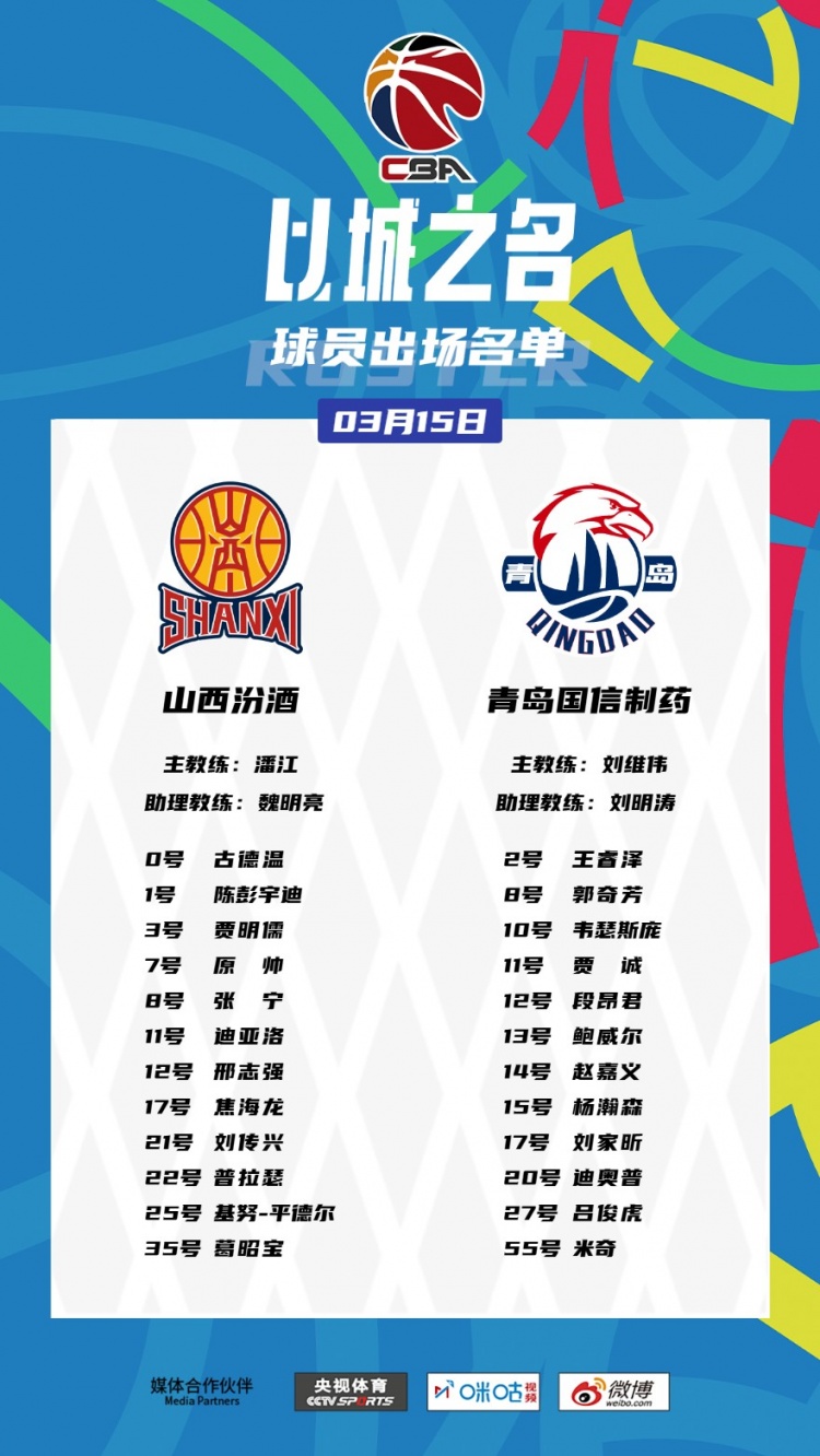 山西隊(duì):古德溫、陳彭宇迪、賈明儒、原帥、張寧、迪亞洛、邢志強(qiáng)、焦海龍、劉傳興、普拉瑟、基努-平德爾、葛昭寶。