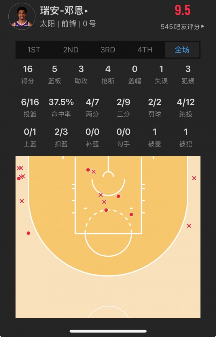 太陽(yáng)28號(hào)秀 瑞安-鄧恩 登場(chǎng)33.5分鐘