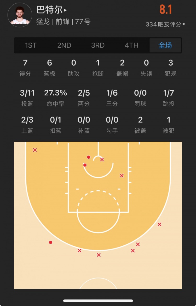 猛龍落選秀 賈米森-巴特爾 登場(chǎng)36.5分鐘