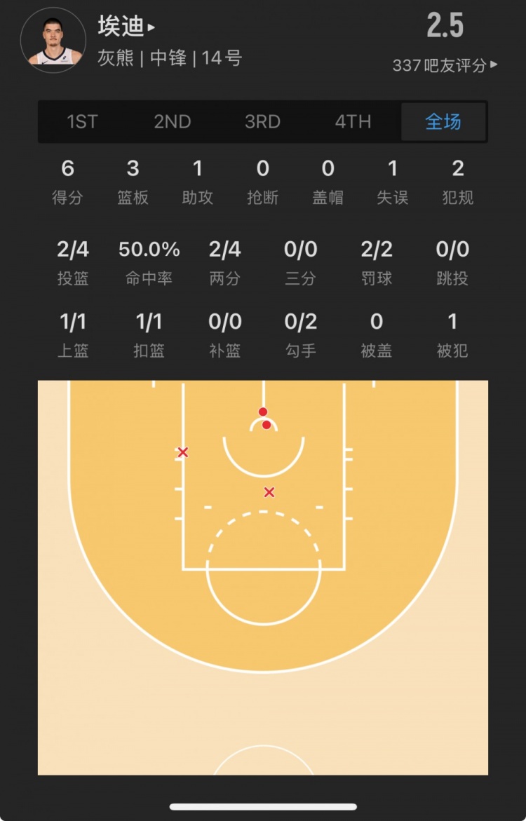 灰熊9號(hào)秀 扎克-埃迪 登場(chǎng)10.8分鐘