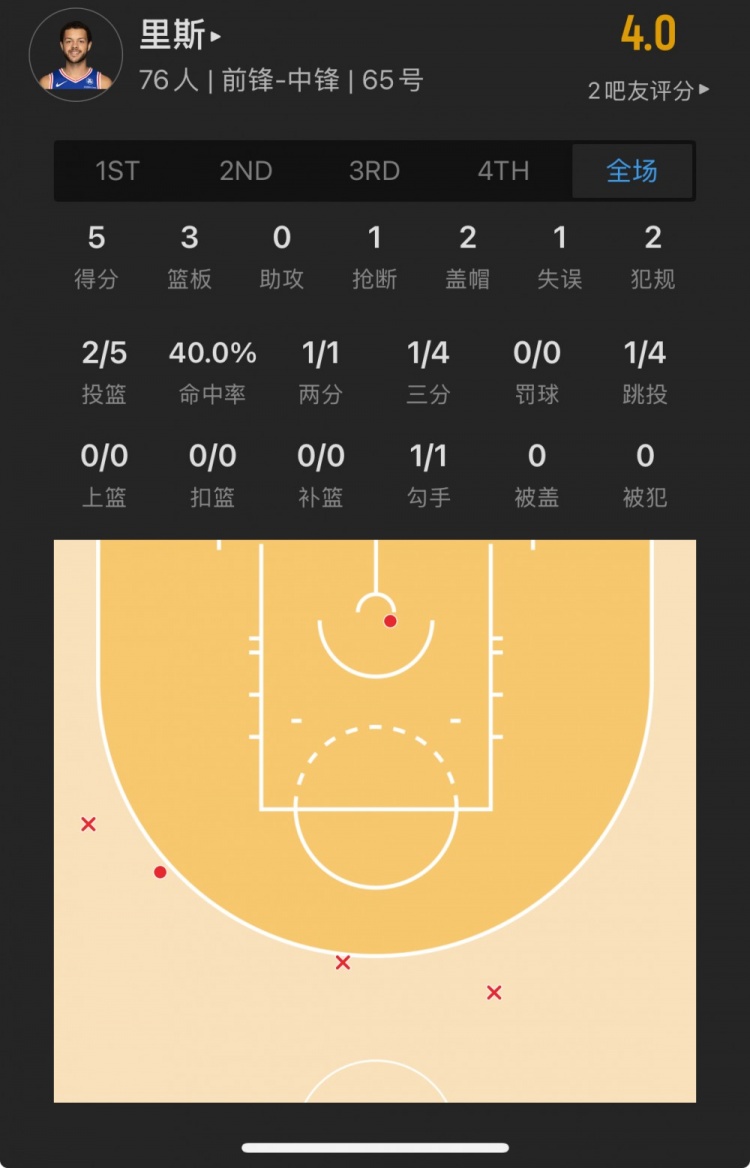 76人落選秀 亞歷克斯-里斯 登場(chǎng)18.5分鐘