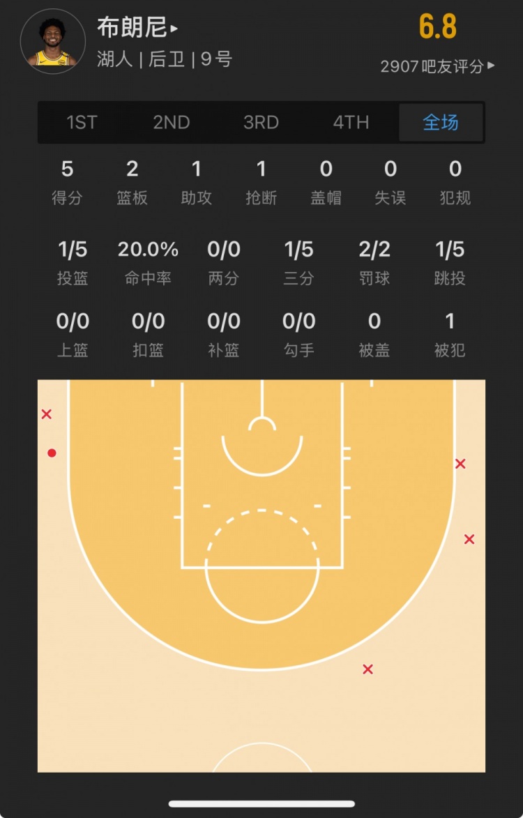 湖人55號(hào)秀 布朗尼-詹姆斯 登場(chǎng)15.7分鐘