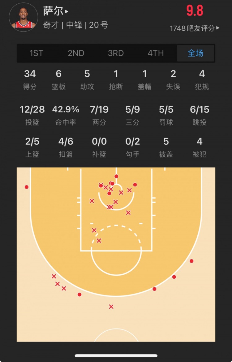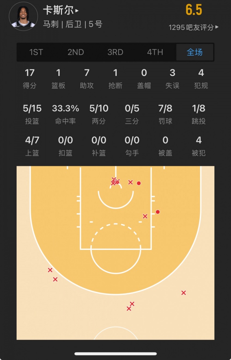 馬刺4號(hào)秀 斯蒂芬-卡斯?fàn)?登場35.9分鐘