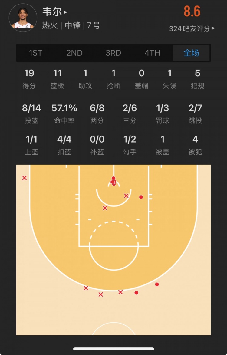 熱火15號(hào)秀 克雷爾-韋爾 登場35.7分鐘