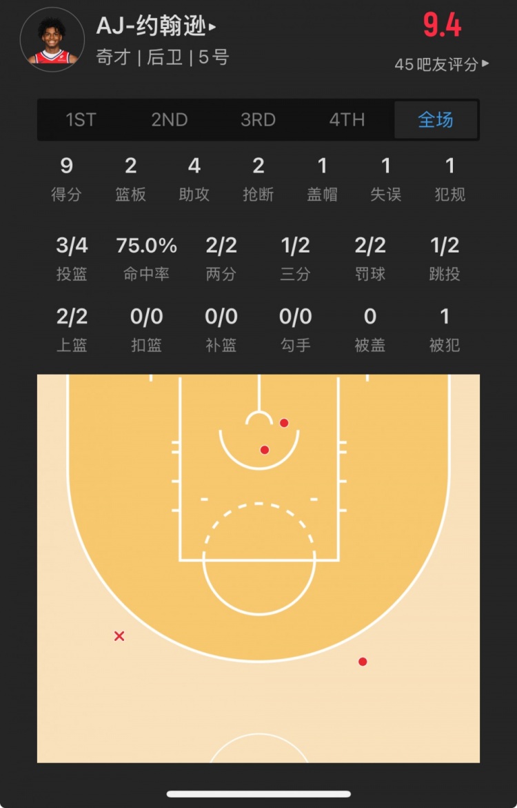 奇才23號(hào)秀 AJ-約翰遜 登場17.8分鐘