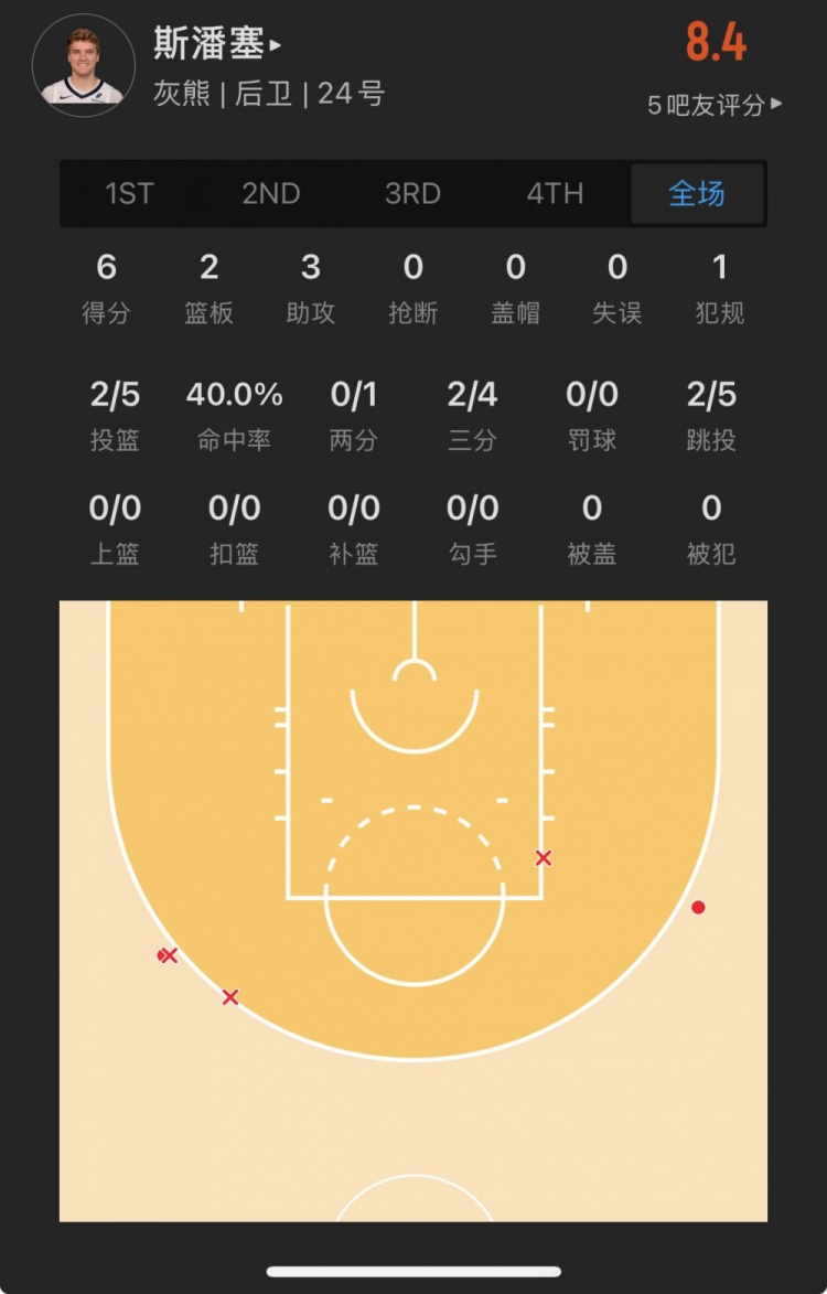 灰熊53號(hào)秀 卡梅隆-斯潘塞 登場18.0分鐘