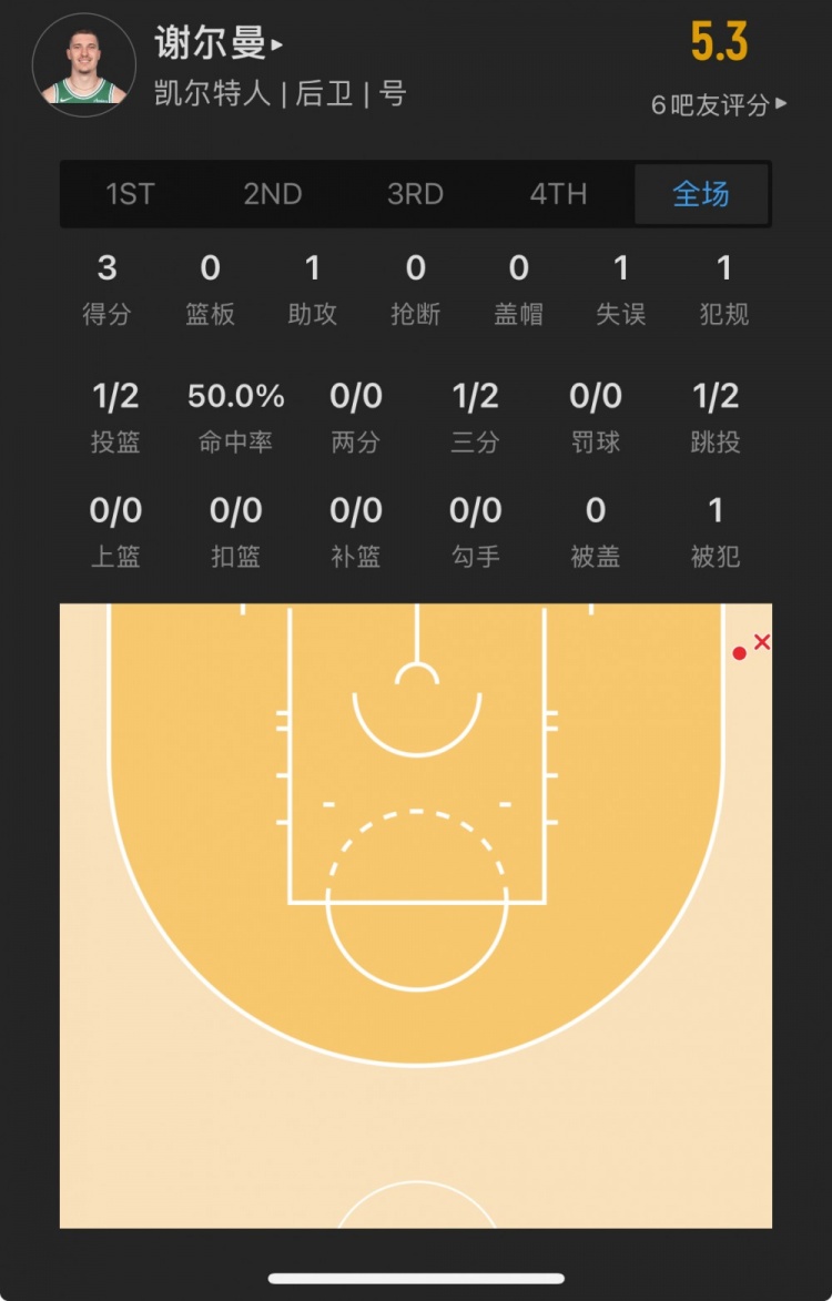 凱爾特人30號(hào)秀 貝勒-謝爾曼 登場10.8分鐘