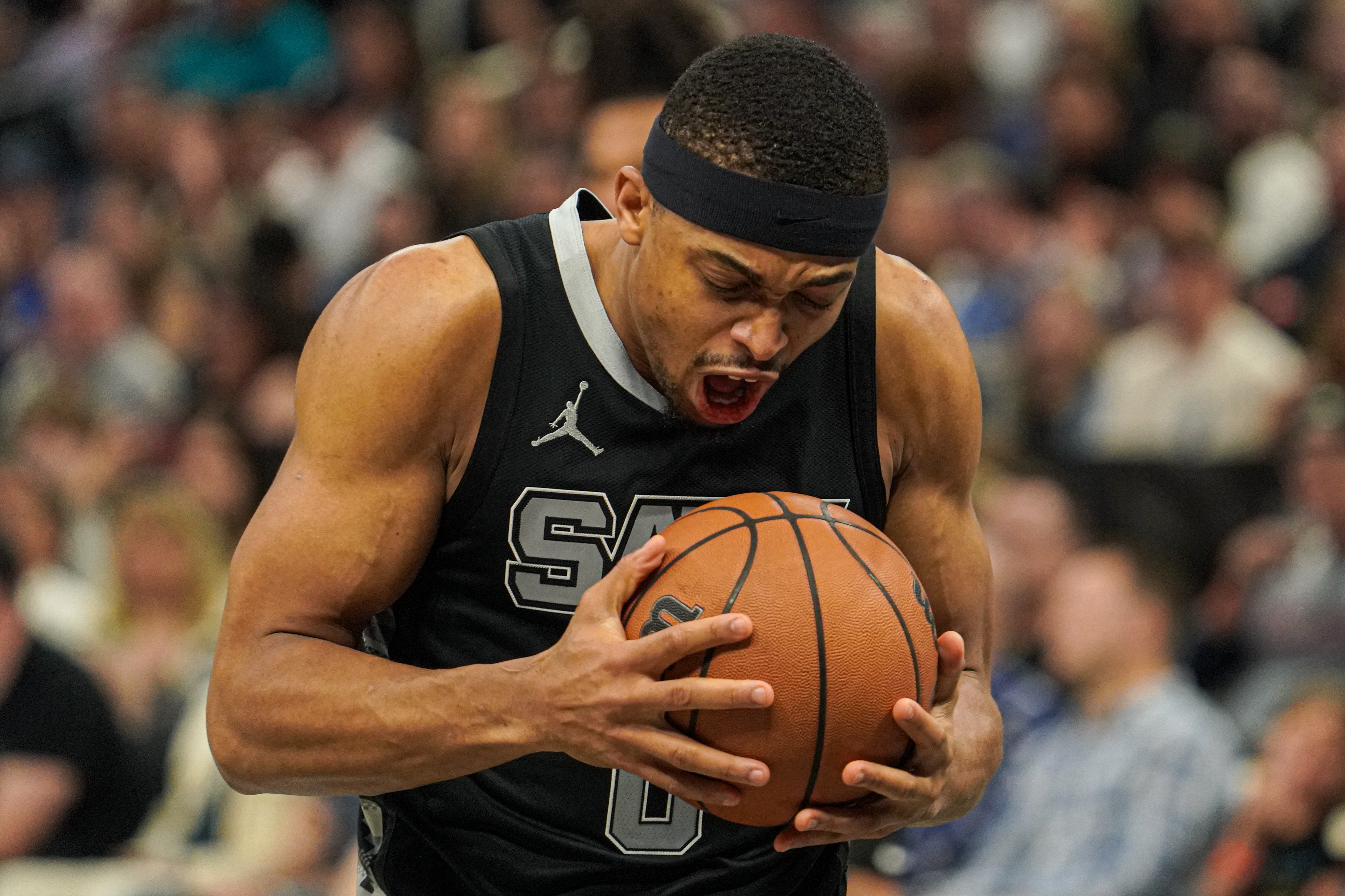 3月16日訊 馬刺今日119-115擊敗鵜鶘,賽后,馬刺球員凱爾登-約翰遜接受媒體采訪。