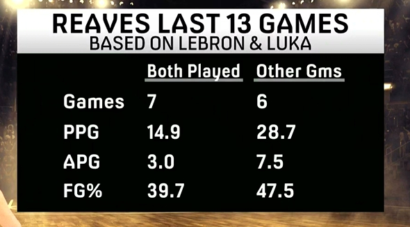 完美三當(dāng)家?里夫斯在東詹一起出戰(zhàn)比賽場(chǎng)均14.9分其他場(chǎng)均28.7分