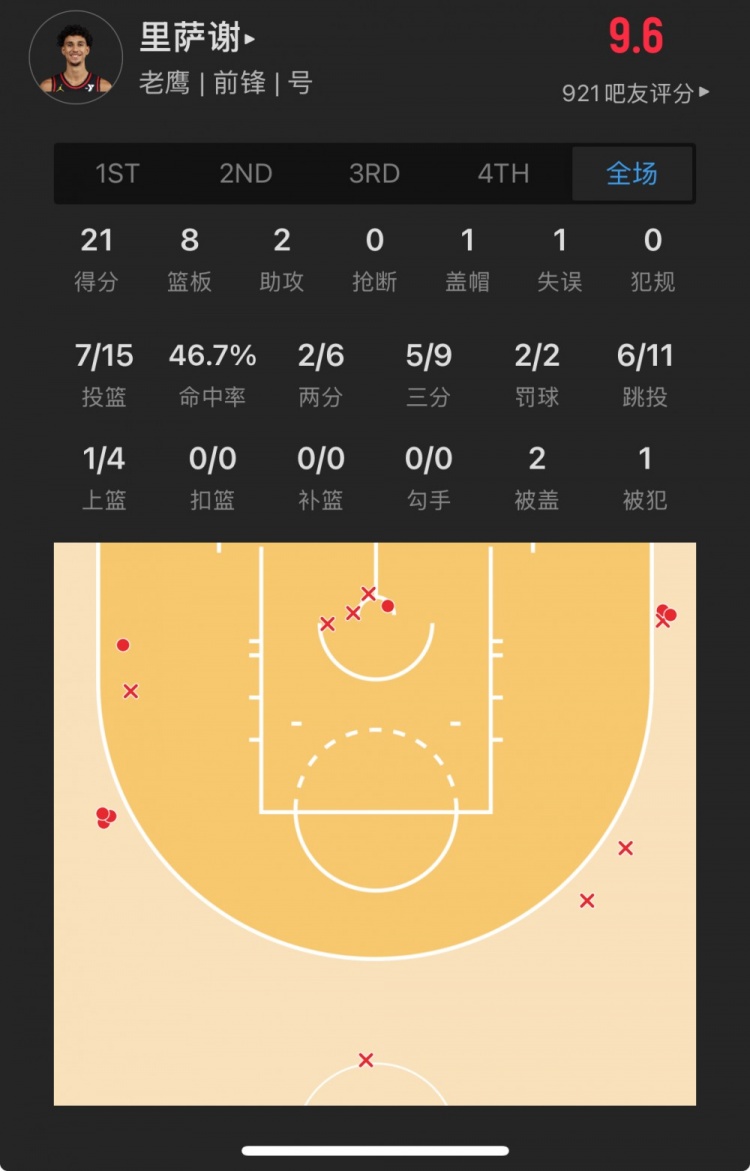 里薩謝得到21分!特雷-楊:在我看來他應該當選年度最佳新秀