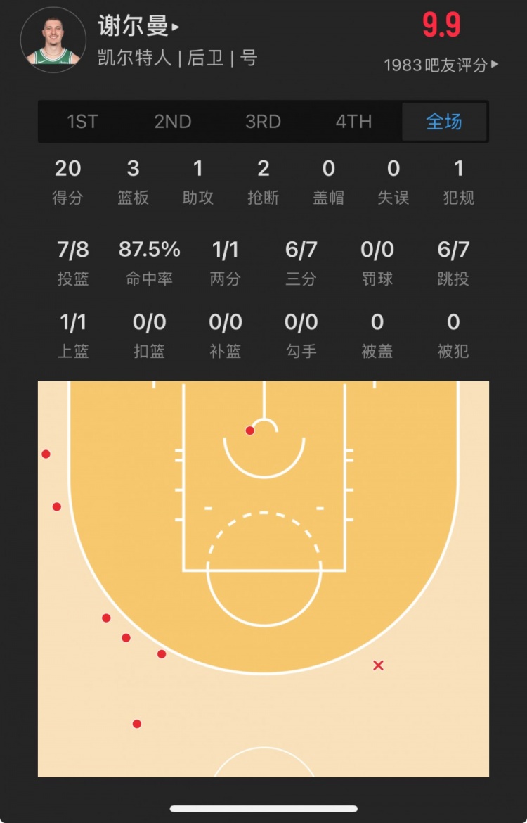 凱爾特人30號秀 貝勒-謝爾曼 登場15.9分鐘