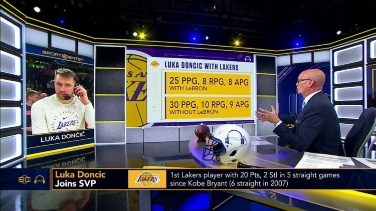 據(jù)統(tǒng)計,在東契奇加盟湖人后,在他和詹姆斯同時出場的比賽中,東契奇場均25分8籃板8助攻;在詹姆斯缺席的比賽中,東契奇場均30分10籃板9助攻。