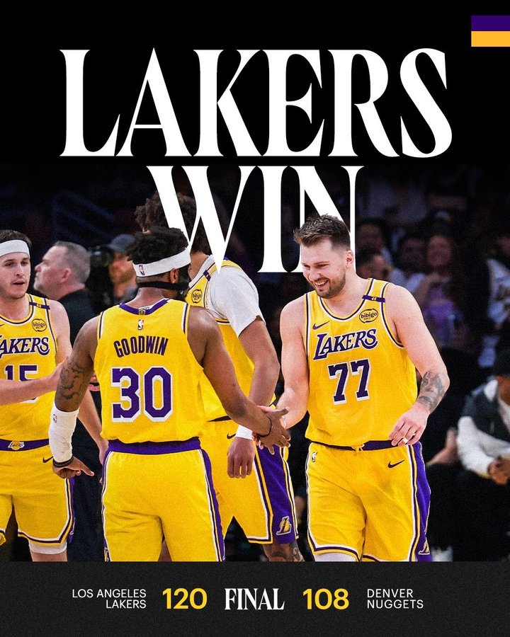 賽后湖人官方曬出贏球海報(bào),東契奇、里夫斯、古德溫和海斯登上封面。