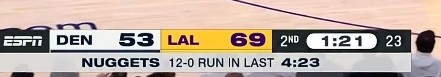 宕機了!湖人四分半一分沒得 被掘金打了一個12-0