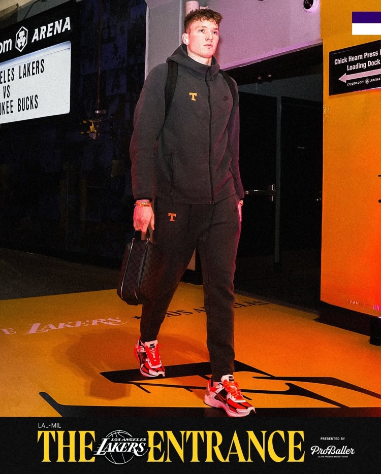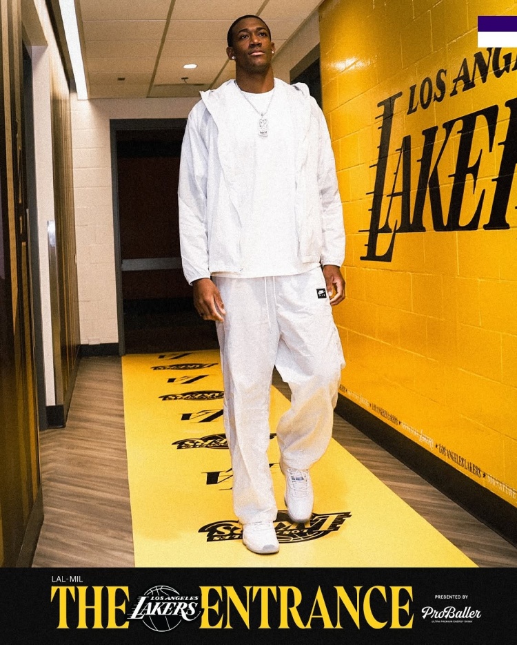 湖人眾將入場穿搭:文森特墨鏡配項鏈 布朗尼蜘蛛連帽衫
