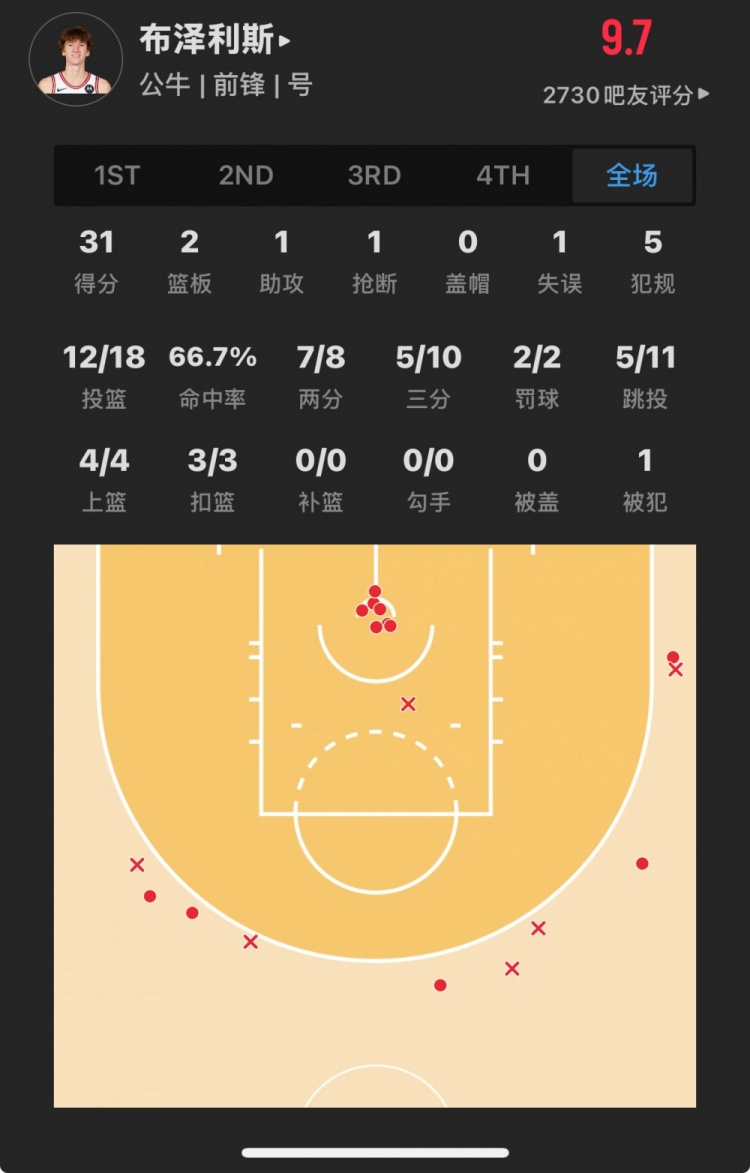 公牛11號秀 馬蒂斯-布澤利斯 登場29.9分鐘