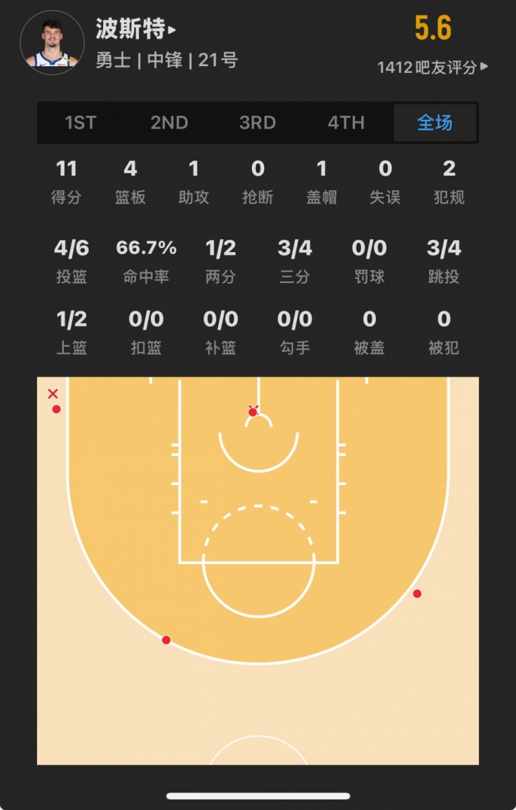勇士52號秀 昆滕-波斯特 登場27.5分鐘