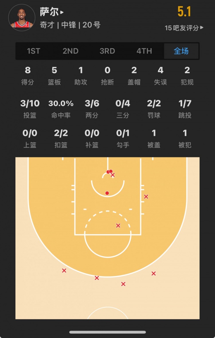 奇才榜眼秀 亞歷克斯-薩爾 登場27.0分鐘