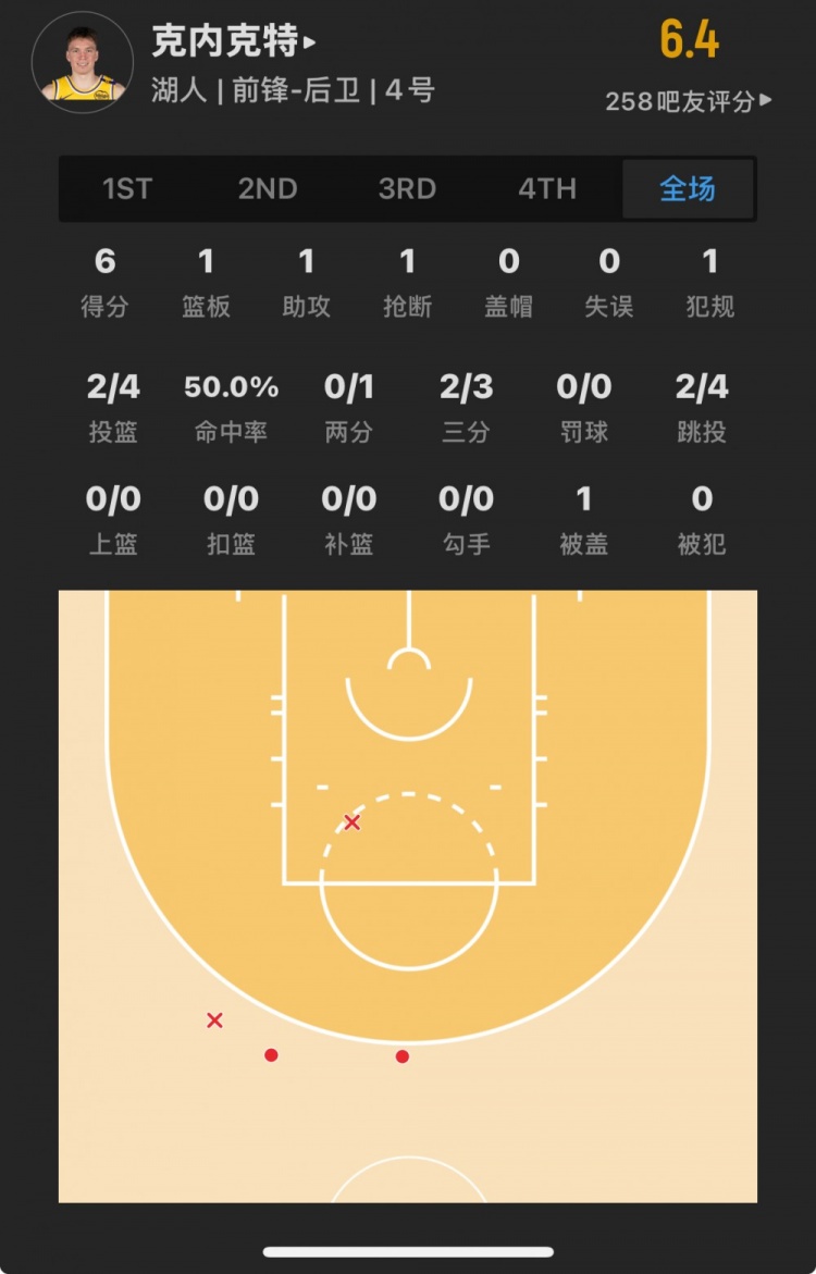 湖人17號秀 道爾頓-克內(nèi)克特 登場6.7分鐘