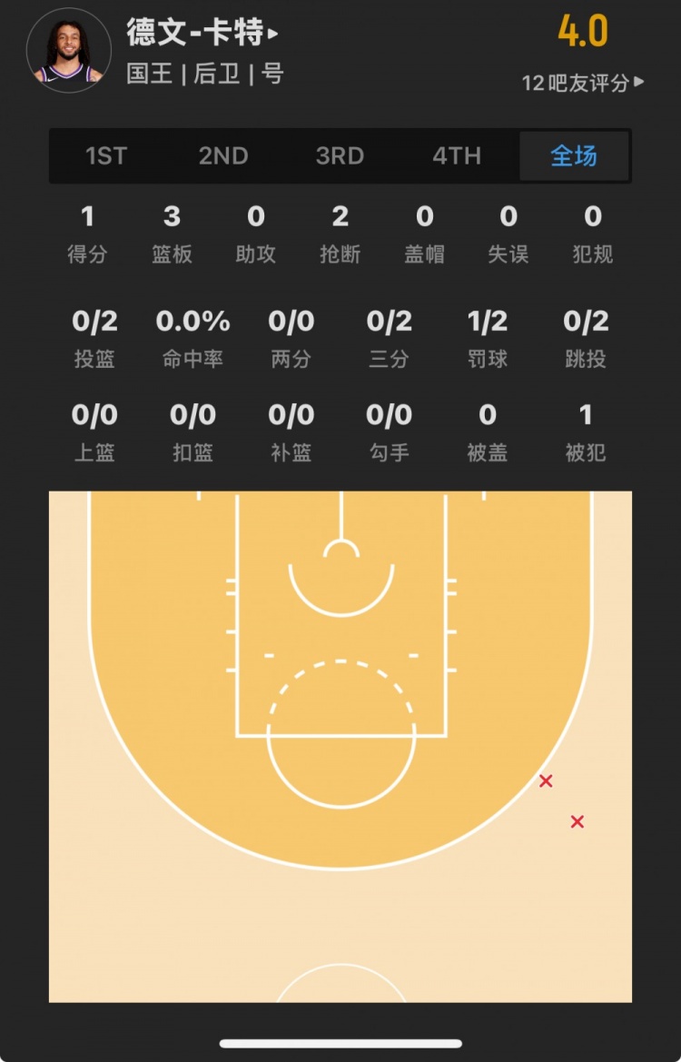國王13號秀 德文-卡特 登場10.0分鐘