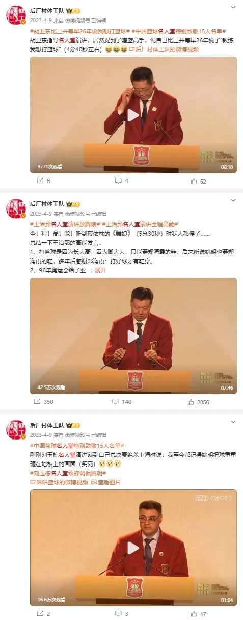 兩年前中國(guó)籃球名人堂第一次辦入堂儀式時(shí),我還在老東家為后廠村體工隊(duì)玩命,那會(huì)我一邊錄屏搶時(shí)間搶話題,一邊隔著屏幕感受著那種“新的文化爭(zhēng)在建立”帶來(lái)的輕松氣氛: