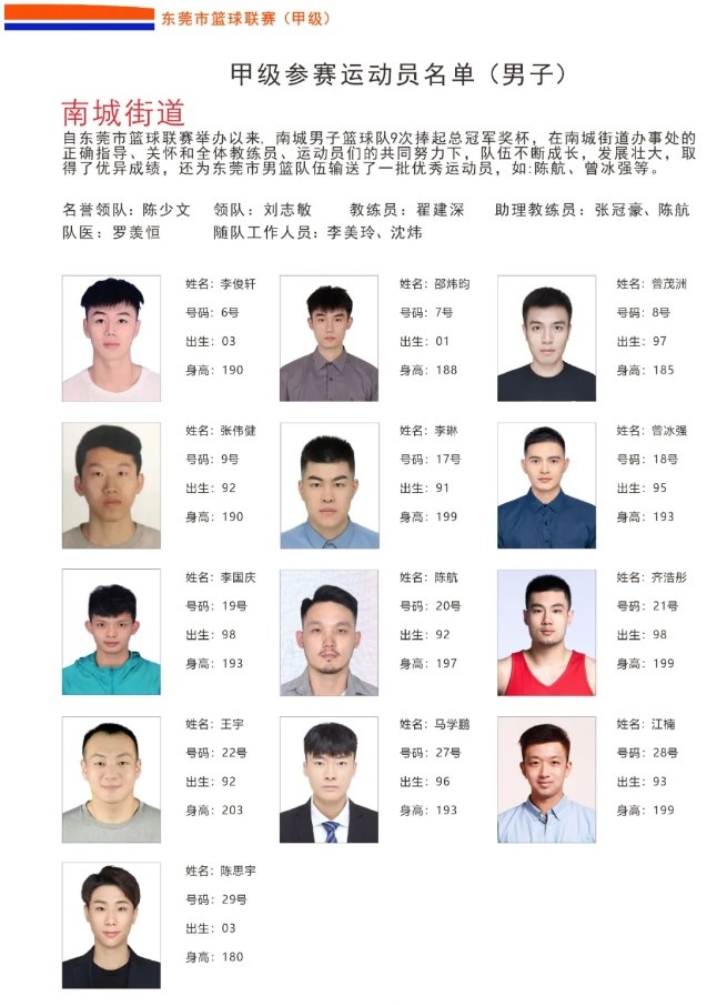 東莞市籃球聯(lián)賽將于4月7日正式開賽,詳細(xì)運動員名單如下: