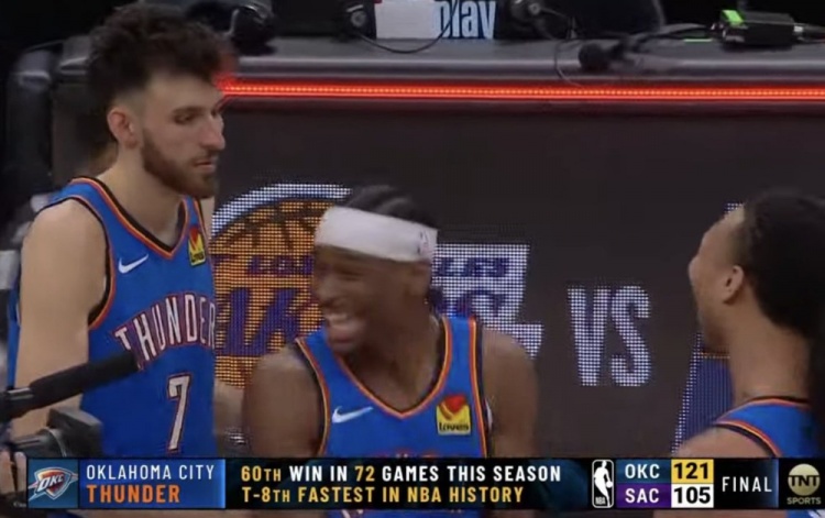 3月26日訊 NBA常規(guī)賽,雷霆賽季3-0橫掃國(guó)王,戰(zhàn)績(jī)來到60勝12負(fù)。