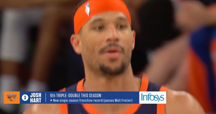 哈特獲本賽季個人第9次三雙 超越弗雷澤&創(chuàng)尼克斯隊(duì)史新紀(jì)錄
