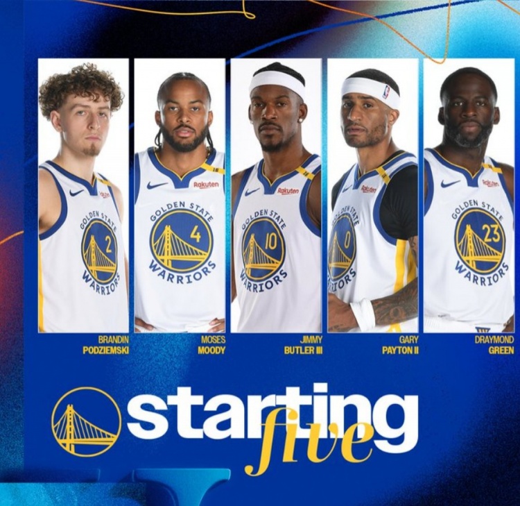 勇士首發(fā):波杰姆斯基、穆迪、小加里-佩頓、巴特勒、追夢格林。