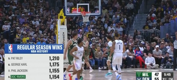 今天能追平嗎?里弗斯勝場(chǎng)數(shù)排名歷史第八 距離禪師僅差1場(chǎng)