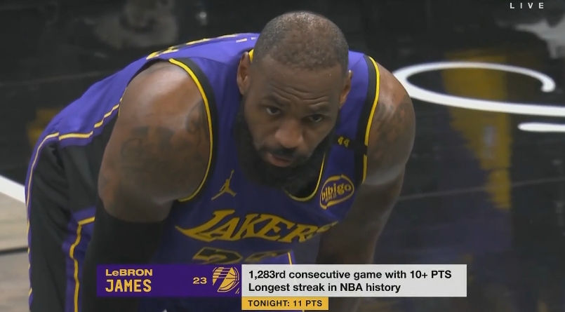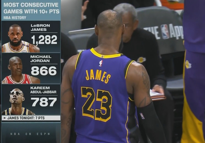 雖遲但到!詹姆斯第四節(jié)開局連得8分連續(xù)1283場比賽得分上雙!