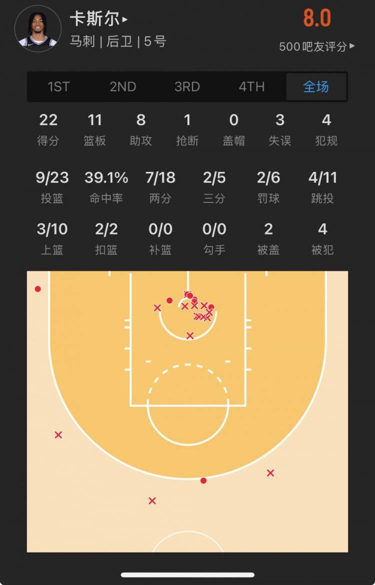 馬刺4號(hào)秀 斯蒂芬-卡斯?fàn)?登場31.9分鐘