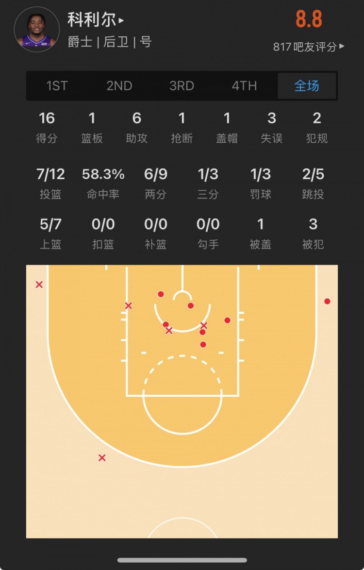爵士29號(hào)秀 以賽亞-科利爾 登場30.6分鐘