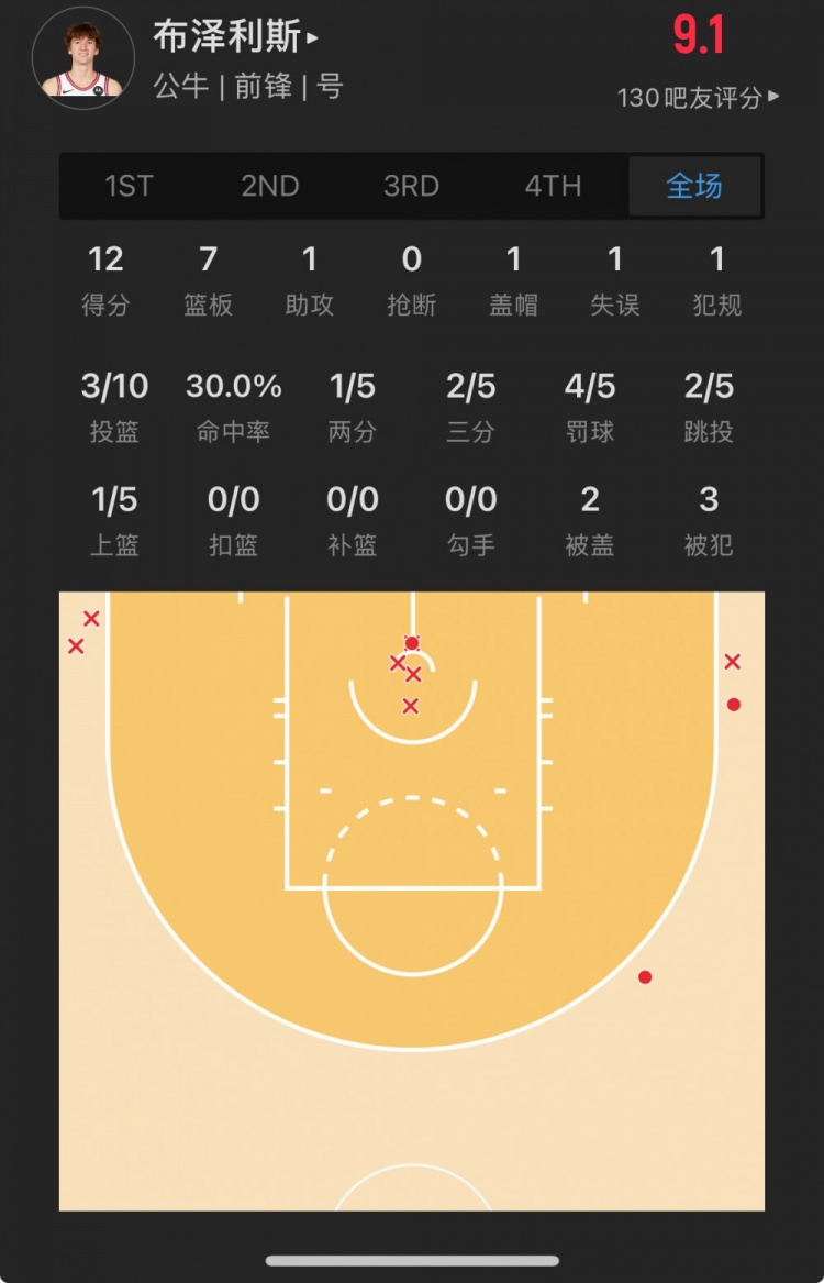公牛11號(hào)秀 馬蒂斯-布澤利斯 登場24.9分鐘