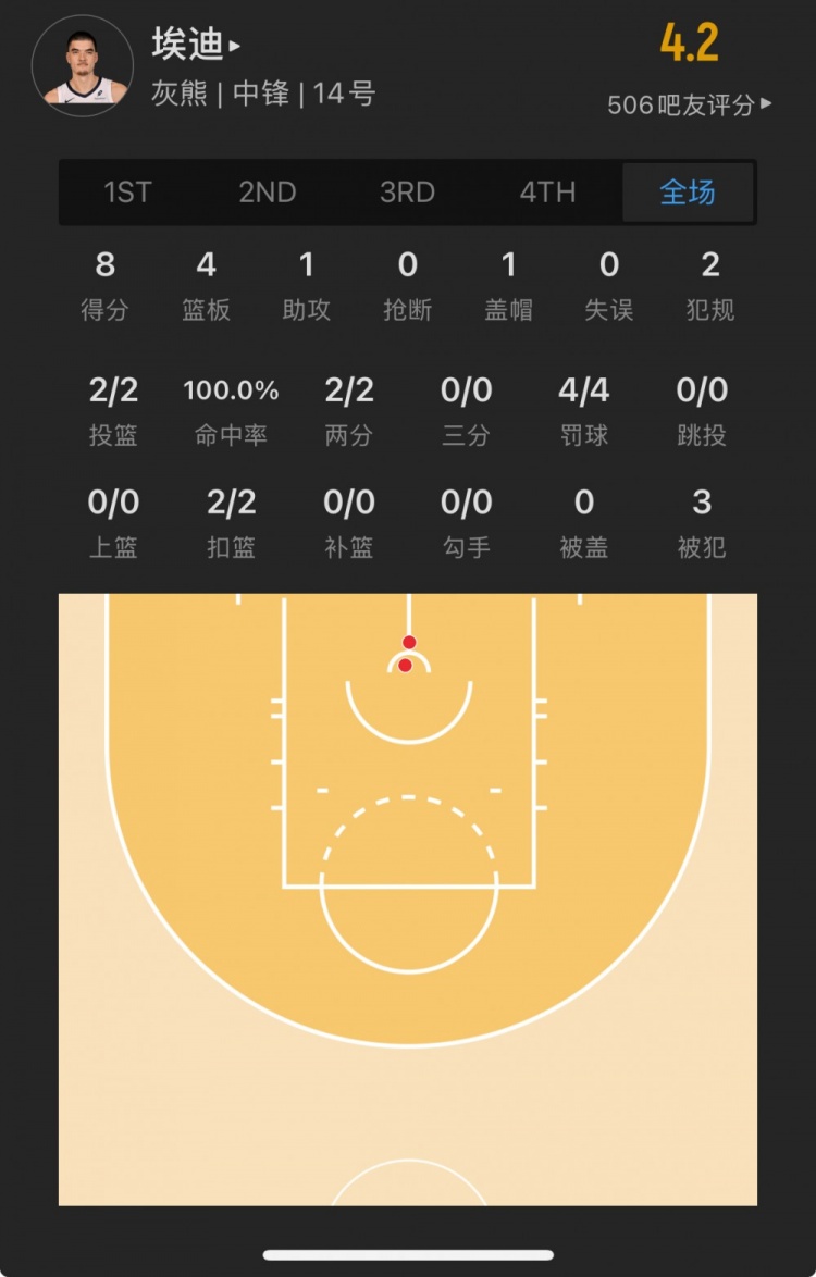 灰熊9號(hào)秀 扎克-埃迪 登場17.0分鐘