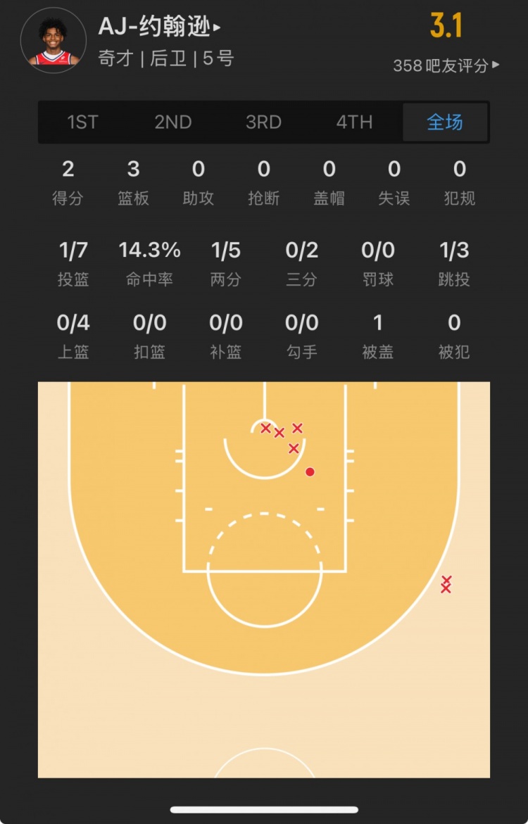 奇才23號(hào)秀 AJ-約翰遜 登場26.6分鐘