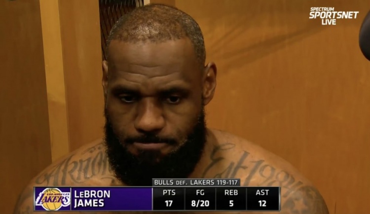 3月28日訊 今日,湖人117-119客場不敵公牛。賽后,湖人前鋒詹姆斯接受了采訪。