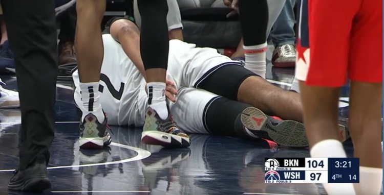 希望沒事?。】仿?約翰遜對抗防守平拍在地板上 已返回更衣室