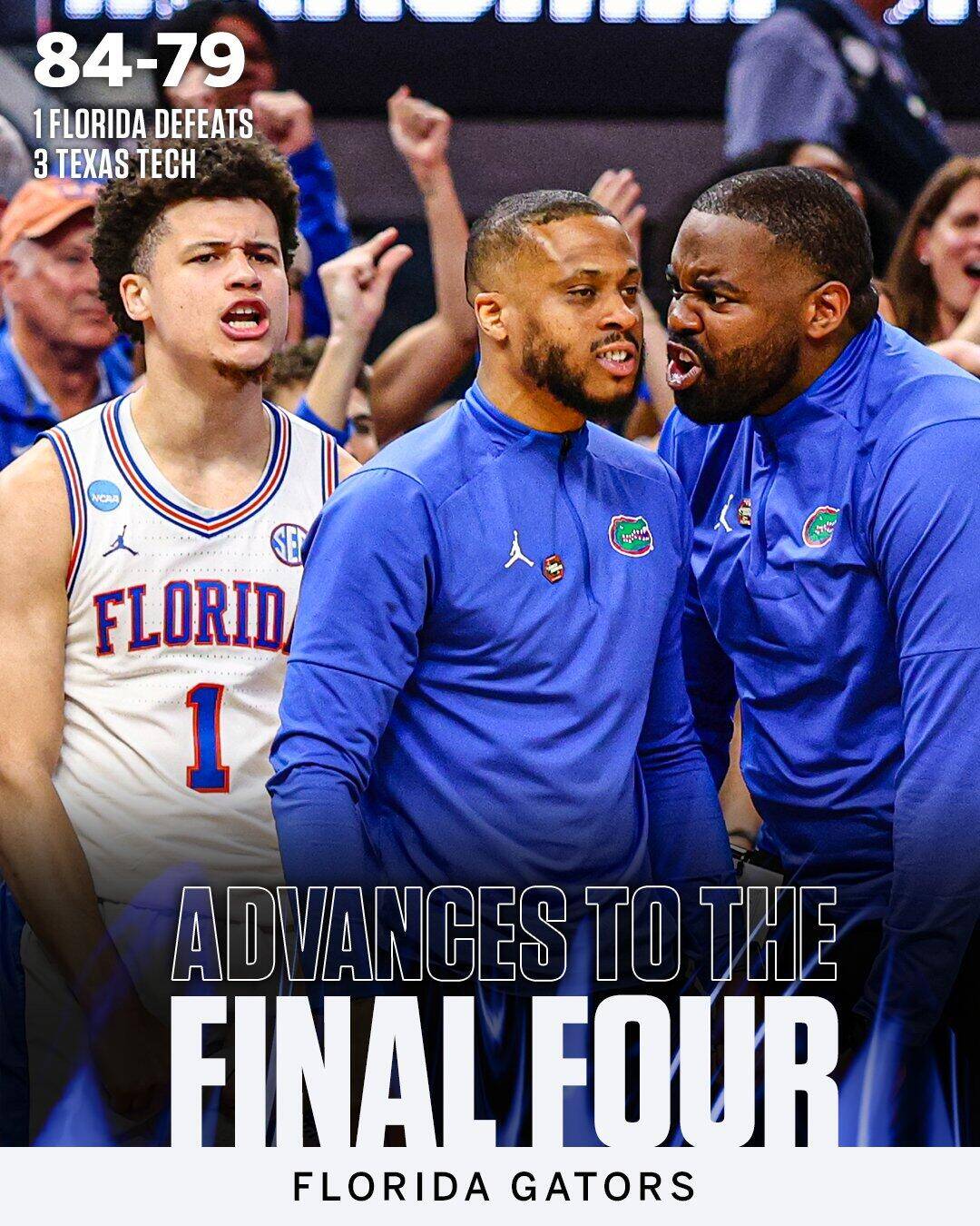 03月30日訊 NCAA“瘋?cè)比厘\標(biāo)賽八進(jìn)四,西區(qū)1號(hào)種子佛羅里達(dá)大學(xué)84-79擊敗得州理工大學(xué)。