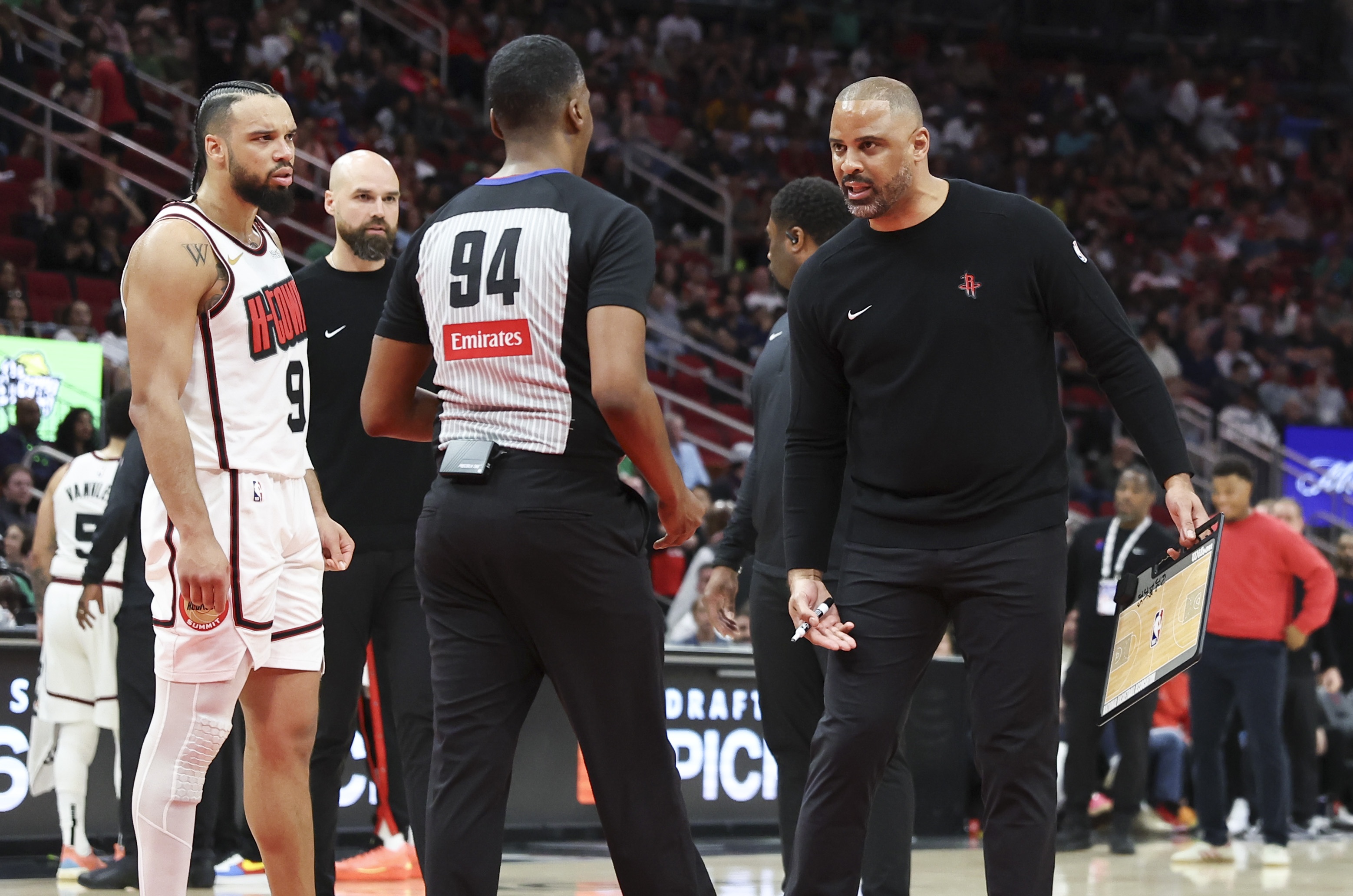 3月31日訊 火箭主帥烏度卡在今日148-109擊敗太陽(yáng)的賽后接受媒體采訪,談到了本隊(duì)隊(duì)員狄龍被驅(qū)逐。