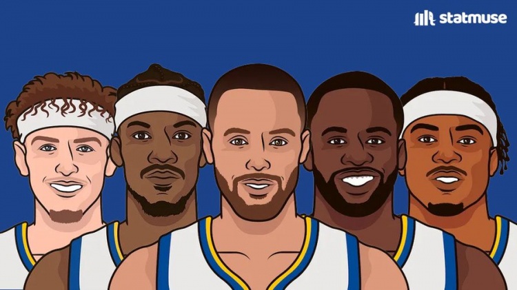 據(jù)統(tǒng)計,勇士當(dāng)派出庫里、波杰姆斯基、穆迪、巴特勒、追夢的首發(fā)陣容時,戰(zhàn)績11勝0負(fù)。