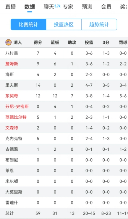 獨(dú)行俠上半場(chǎng)52中18&命中率僅34.6% 湖人命中率44.4%