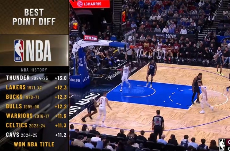第2-6均當(dāng)季奪冠!本季雷霆場(chǎng)均凈勝13分暫列歷史第1 騎士第7