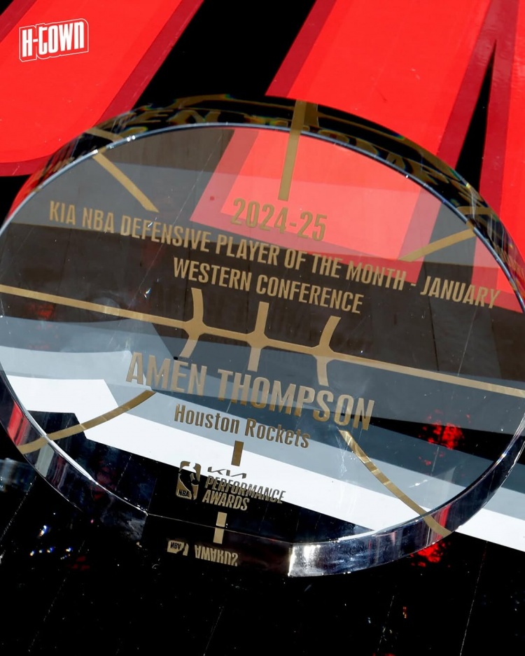 阿門今天拿到了1月最佳防守球員獎(jiǎng)杯 火箭官方:實(shí)至名歸