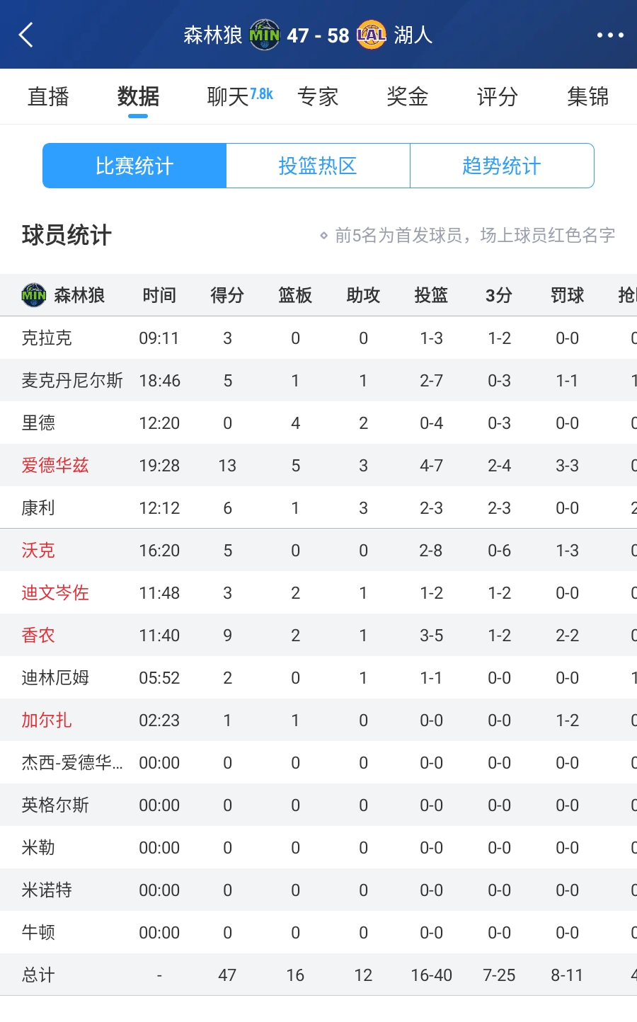 還在找出手時(shí)機(jī)!愛德華茲半場(chǎng)7中4&三分3中2拿到13分5板3助